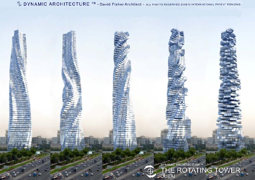 Đây là một hệ thống nhà cao tầng với những góc cạnh độc đáo, bao gồm các căn hộ cao cấp, văn phòng… Tòa nhà cao 420 mét sẽ có 80 tầng xoay tròn 360 độ xung quanh một trục chính điều khiển bằng 79 tua bin chạy bằng năng lượng từ sức gió lắp đặt tại mỗi tầng.