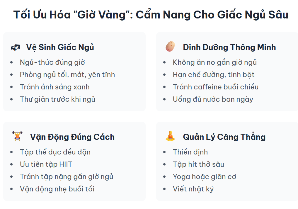 Hiểu được tầm quan trọng của giấc ngủ sâu, chúng ta hoàn toàn có thể áp dụng các biện pháp khoa học để cải thiện chất lượng giấc ngủ và tối ưu hóa việc giải phóng HGH tự nhiên.