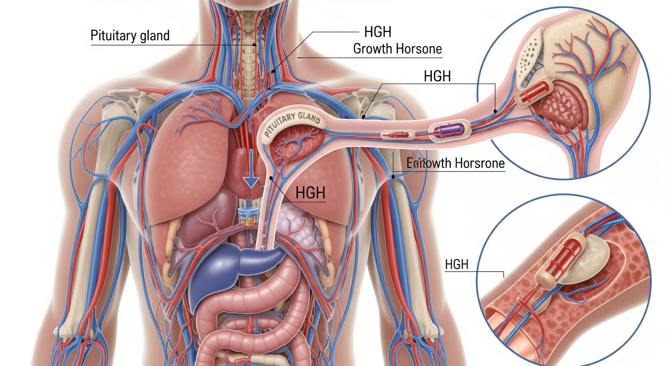 Hormone tăng trưởng của con người (Human Growth Hormone – HGH), hay còn gọi là somatotropin, là một loại hormone chủ chốt do tuyến yên, một tuyến nhỏ ở đáy não, sản xuất.1 Hormone này đóng vai trò kép: ở trẻ em và thanh thiếu niên, nó là động lực chính kích thích sự phát triển của xương và các mô, giúp tăng chiều cao; ở người lớn, HGH chuyển sang nhiệm vụ duy trì cấu trúc cơ thể, điều hòa quá trình trao đổi chất và sửa chữa các tế bào bị tổn thương.