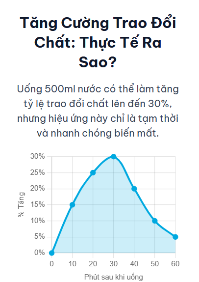 Tuy nhiên, điều quan trọng là phải phân biệt giữa “tỷ lệ tăng” và “lượng calo thực tế” được đốt cháy. Mặc dù con số 30% nghe có vẻ ấn tượng, nhưng lượng calo thực tế được đốt cháy từ sự kích thích này vẫn rất khiêm tốn, chỉ khoảng 4-8 calo mỗi ly nước. Điều này có nghĩa là, tỷ lệ trao đổi chất tăng lên dựa trên một mức năng lượng tiêu hao rất nhỏ ban đầu cho việc làm ấm nước, khiến cho tổng lượng calo bổ sung được đốt cháy không đáng kể.
