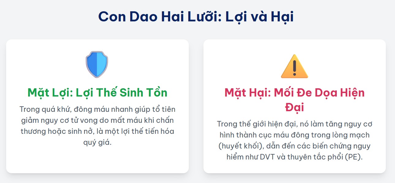 - Từng là lợi thế sinh tồn, nay lại là yếu tố nguy cơ huyết khối (DVT, PE).