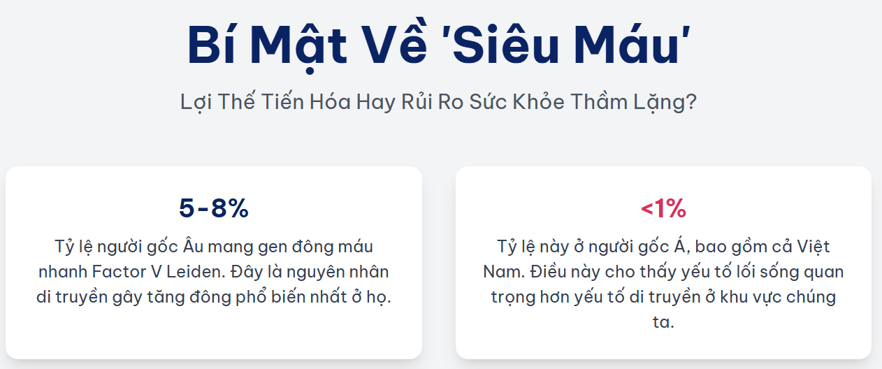 - Sự phổ biến (Điểm quan trọng cho độc giả Việt Nam): Mặc dù FVL ảnh hưởng đến khoảng 5-8% người gốc Âu, đột biến này lại cực kỳ hiếm ở các quần thể người châu Á, bao gồm cả người Việt Nam. Nhiều nghiên cứu cho thấy tỷ lệ này ở người châu Á thường dưới 1% hoặc thậm chí không được tìm thấy.25 Đây là một thông tin quan trọng giúp trấn an và định hướng đúng mối quan tâm về sức khỏe cho độc giả.