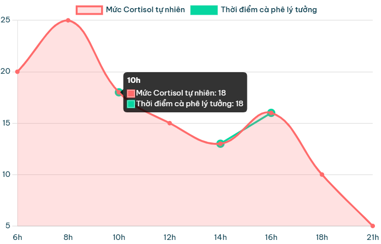 Khi một người tiêu thụ cà phê ngay sau khi thức dậy, họ đang nạp caffeine vào cơ thể đúng vào thời điểm mà mức cortisol tự nhiên đang ở đỉnh điểm. Caffeine có khả năng kích thích thêm quá trình sản xuất cortisol. Sự “quá tải” cortisol này, kết hợp với tác dụng kích thích của caffeine, có thể khiến một số người cảm thấy lo lắng, bồn chồn, cáu kỉnh hoặc “quá hưng phấn”. Hơn nữa, khi cơ thể đã tự nhiên tỉnh táo nhờ cortisol, việc bổ sung caffeine vào thời điểm này có thể làm giảm hiệu quả cảm nhận được của caffeine.