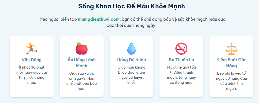 - Lối sống khoa học đóng vai trò then chốt trong việc duy trì sức khỏe mạch máu.