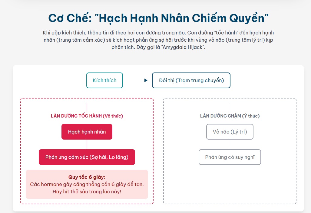 - Điều gì xảy ra khi ta bị hạch hạnh nhân khống chế (What Happens During An Amygdala Hijack)? – Exploring Psychology, truy cập vào tháng 6 28, 2025, https://trangtamly.blog/2024/07/31/dieu-gi-xay-ra-khi-ta-bi-hach-hanh-nhan-khong-che-what-happens-during-an-amygdala-hijack/