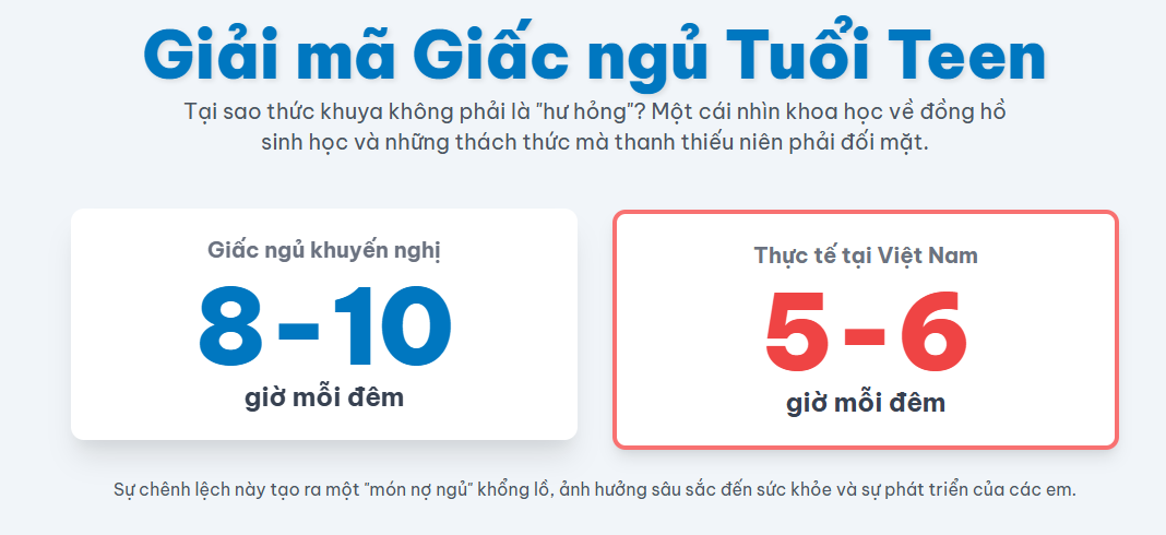Các nghiên cứu đã liên tục chỉ ra tác động nghiêm trọng của giờ học sớm. Đây không chỉ là một vấn đề cá nhân đơn lẻ; nó đại diện cho một vấn đề hệ thống, nơi các chính sách giáo dục hiện hành xung đột trực tiếp với thực tế sinh học cơ bản của sự phát triển ở tuổi vị thành niên. Việc các tổ chức uy tín như Học viện Nhi khoa Hoa Kỳvà Học viện Y học Giấc ngủ Hoa Kỳ mạnh mẽ ủng hộ việc lùi giờ học không sớm hơn 8:30 sáng cho thấy sự công nhận rộng rãi về mức độ nghiêm trọng của vấn đề này trong giới chuyên gia hàng đầu. Bối cảnh cụ thể của Việt Nam, với các yếu tố văn hóa đặc thù như kỳ nghỉ hè dài, văn hóa “học thêm” phổ biến và lịch học thường được điều chỉnh theo giờ làm của cha mẹ, càng làm trầm trọng thêm vấn đề vốn đã nghiêm trọng này. Sự kết hợp của các yếu tố này dẫn đến một hệ quả sâu sắc: việc dán nhãn “hư hỏng” cho thanh thiếu niên không chỉ không chính xác về mặt khoa học mà còn là một sự xao nhãng có hại khỏi một cuộc khủng hoảng sức khỏe cộng đồng lớn hơn nhiều, một phần do hệ thống giáo dục không khoa học và lỗi thời duy trì. Do đó, bài viết này nhấn mạnh sự cần thiết của những thay đổi chính sách mang tính hệ thống, khẳng định rằng giải pháp vượt xa những điều chỉnh hành vi cá nhân.