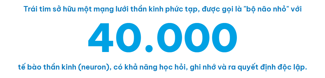 40.000 Neuron | Các tế bào thần kinh tạo thành mạng lưới phức tạp trong tim. | Xử lý thông tin, học hỏi, đưa ra quyết định độc lập với não bộ; kiểm soát nhịp tim, tần số, co bóp. |