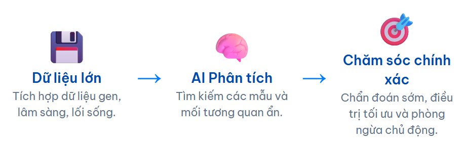 | Cơ sở dữ liệu | Dựa trên triệu chứng, kinh nghiệm lâm sàng chung | Dựa trên gen, môi trường, lối sống cá nhân |