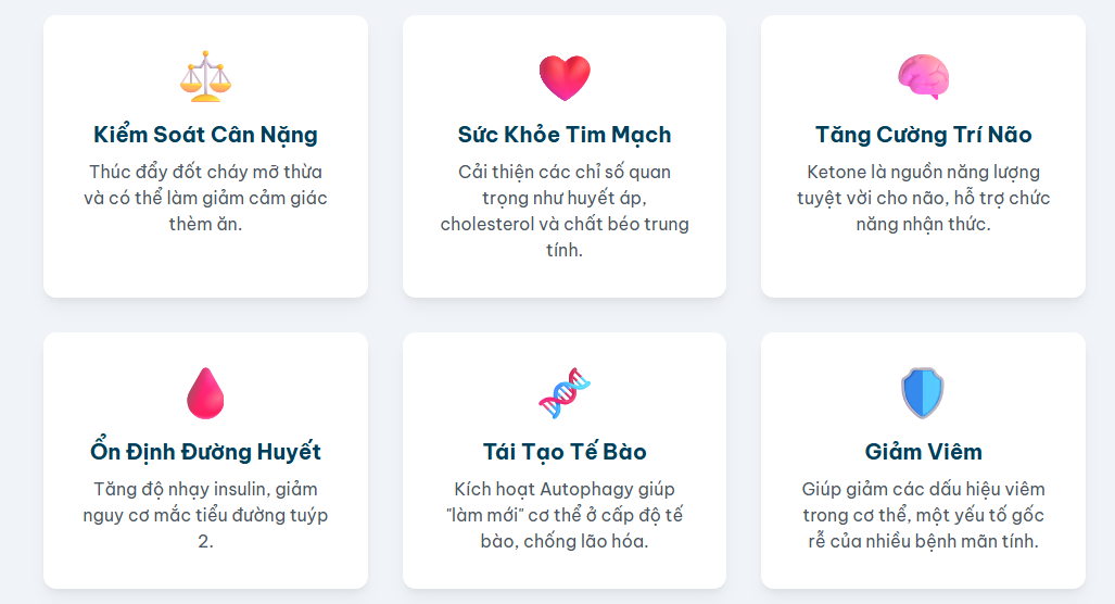 Những lợi ích này cho thấy IF không chỉ là một “chế độ ăn kiêng” mà là một “lối sống” có thể tác động tích cực đến nhiều hệ thống trong cơ thể, thúc đẩy sức khỏe toàn diện và bền vững.