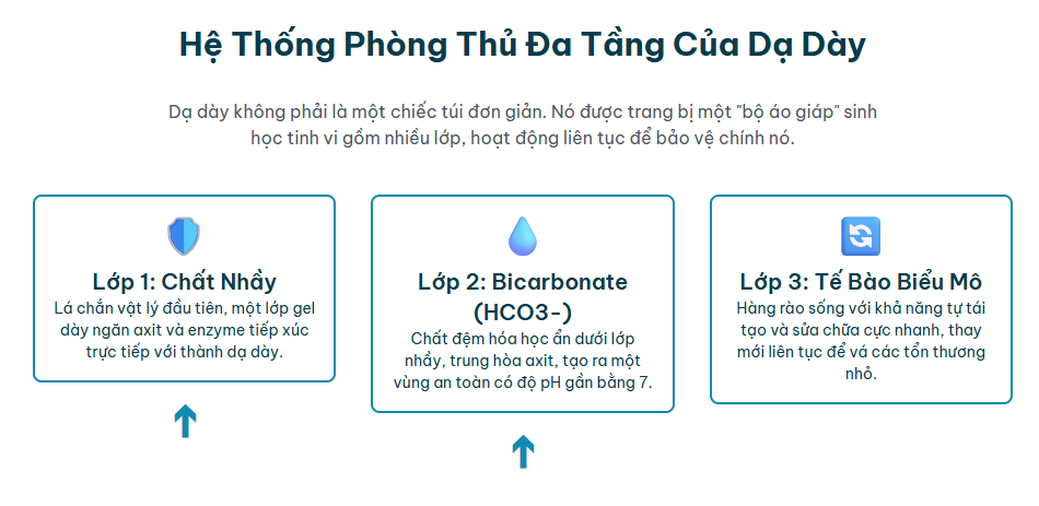 Cơ chế bảo vệ đa tầng của dạ dày khỏi axit và pepsin